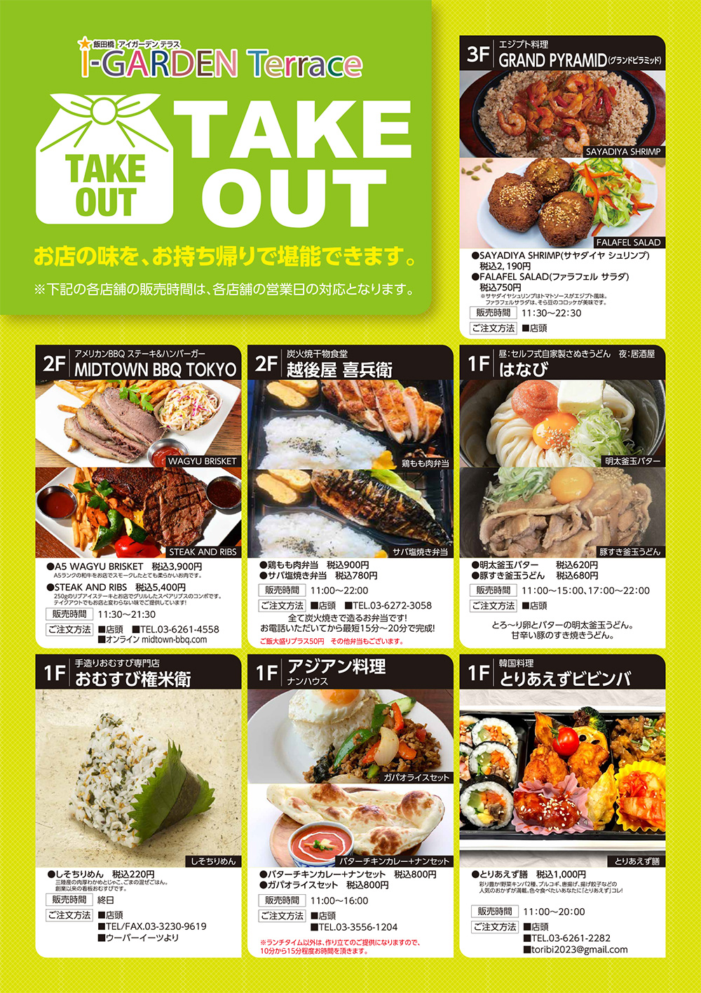 テイクアウト商品も豊富にご用意。